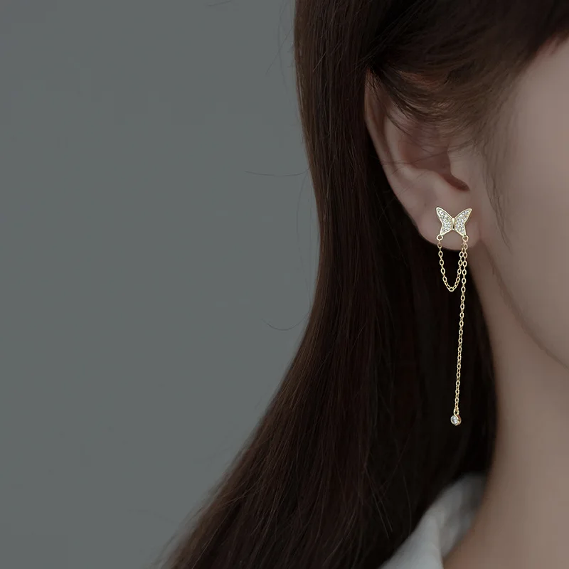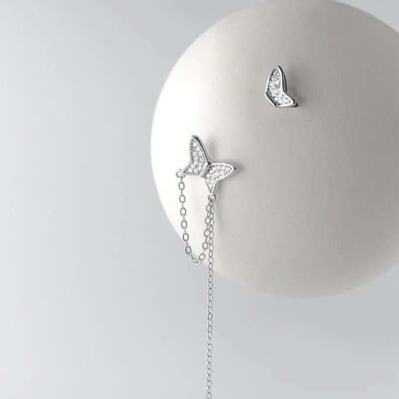 Женские серьги-гвоздики из серебра 925 пробы с асимметричными бабочками