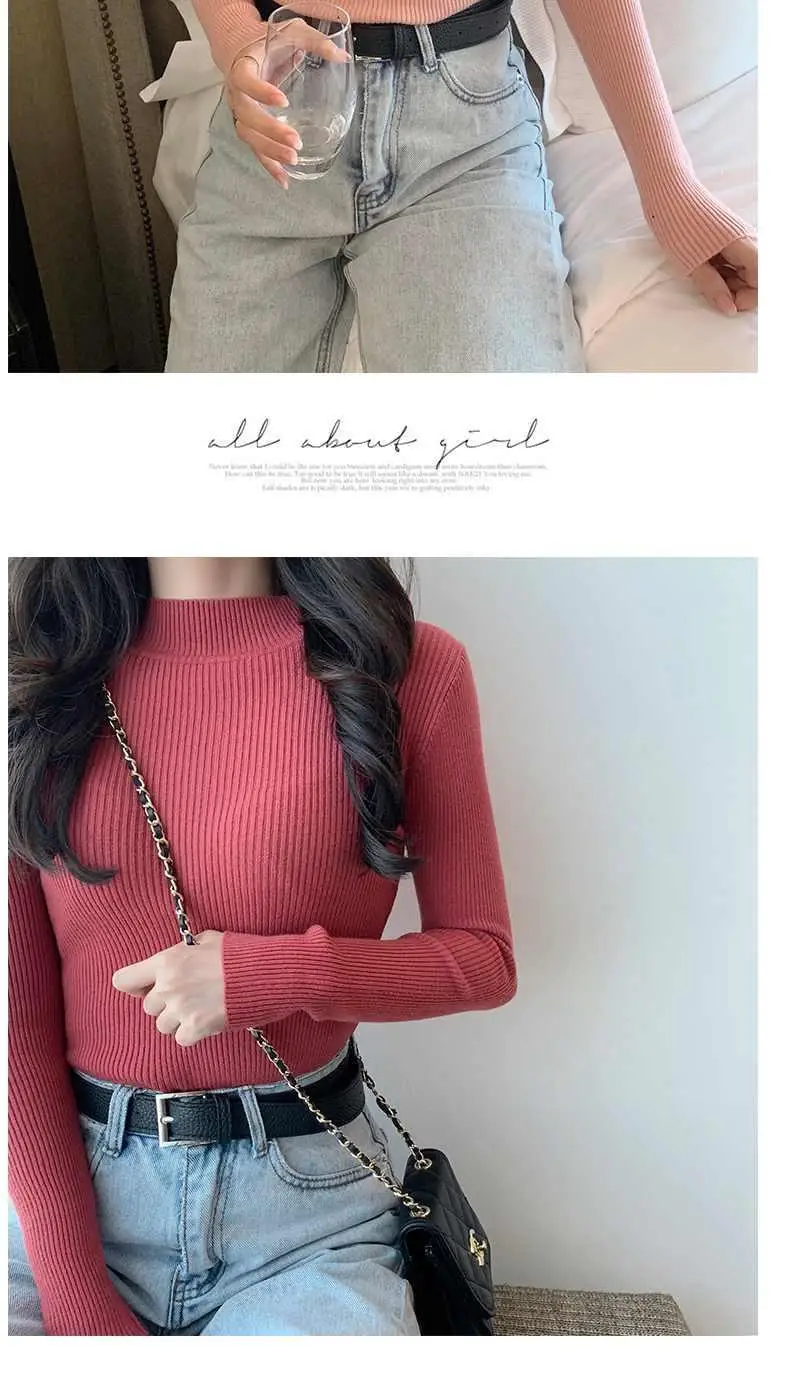 Женская водолазка, осенне-зимняя одежда, облегающий свитер, женские...