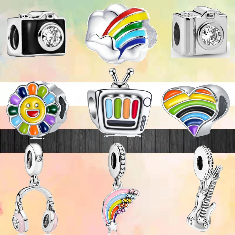 Новинка Серебряный цвет яркий ТВ Подсолнух Радуга подвеска очаровательные розовые наушники Бусина Подходит для оригинального браслета Pandora DIY женские ювелирные изделия