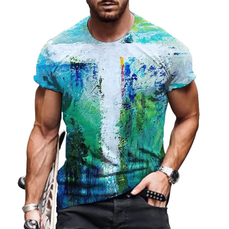 Футболка мужская оверсайз, летняя стандартная, с абстрактным принто...
