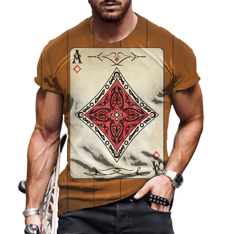 Футболка мужская с 3D-принтом, Повседневная рубашка в стиле хип-хоп, с круглым вырезом и короткими рукавами, с принтом игральных карт, летняя одежда