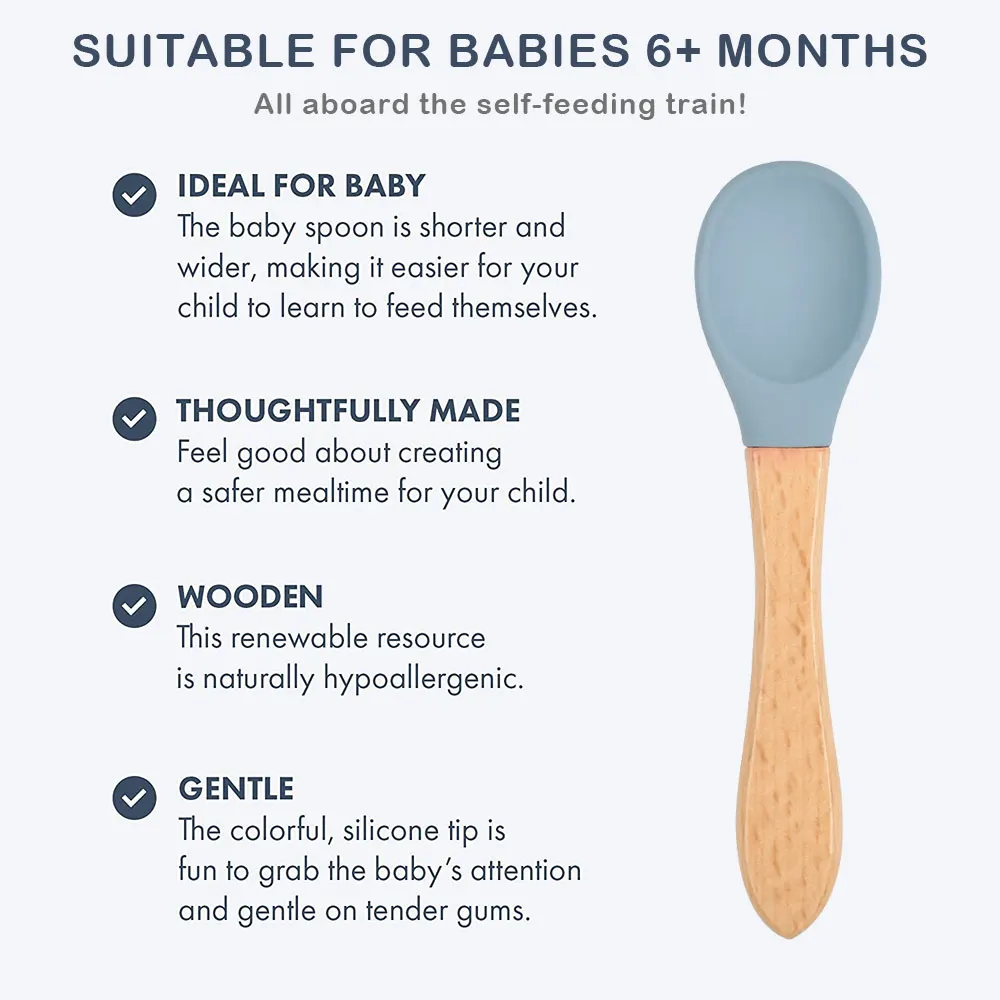 Силиконовая ложка, деревянная ручка для кормления, детская посуда