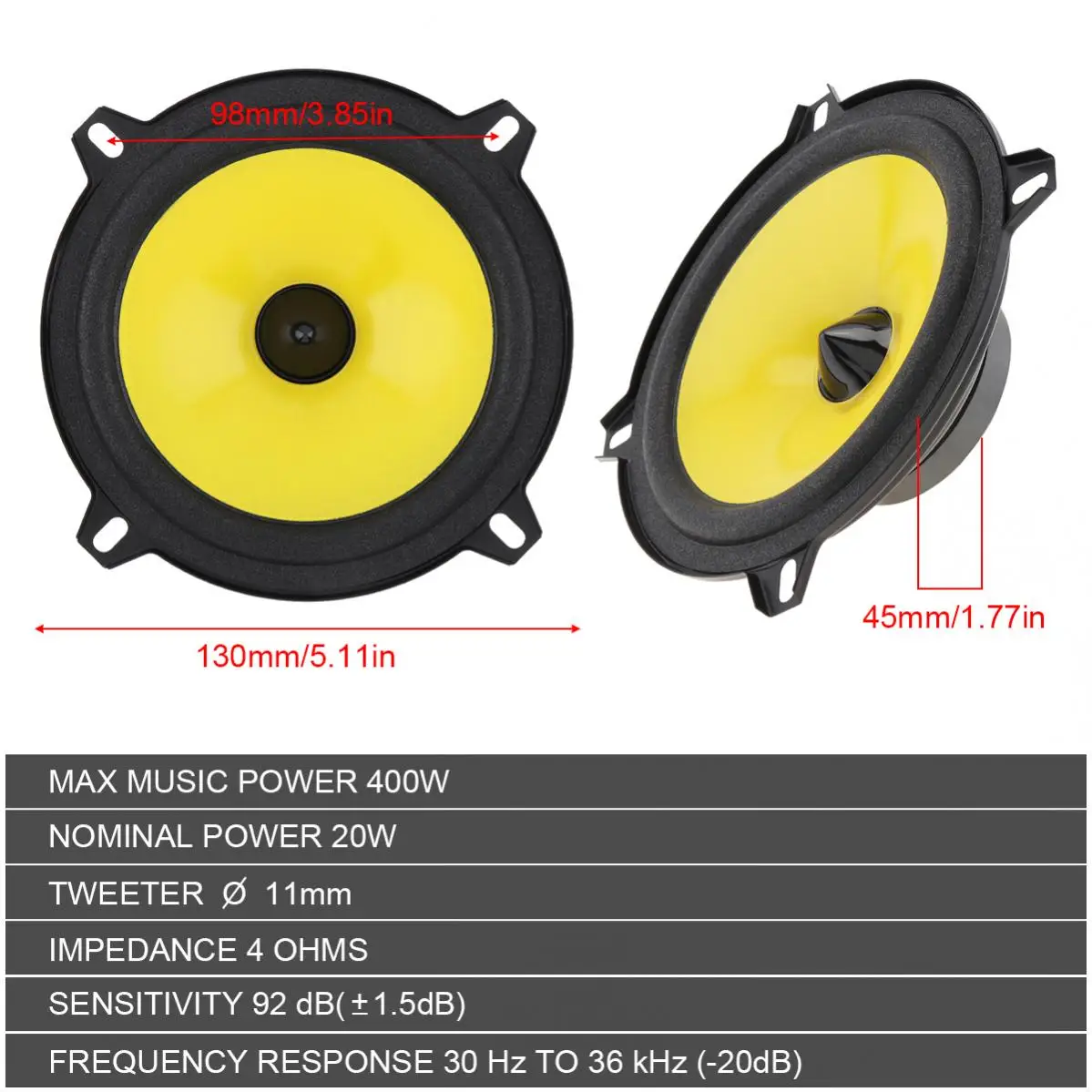 Автомобильный коаксиальный динамик, 2 шт., 5 дюймов, 400 Вт, тяжелый Средний бас, ультратонкий модифицированный динамик s, автомобильная аудиосистема, Полнодиапазонный динамик с частотой для автомобиля