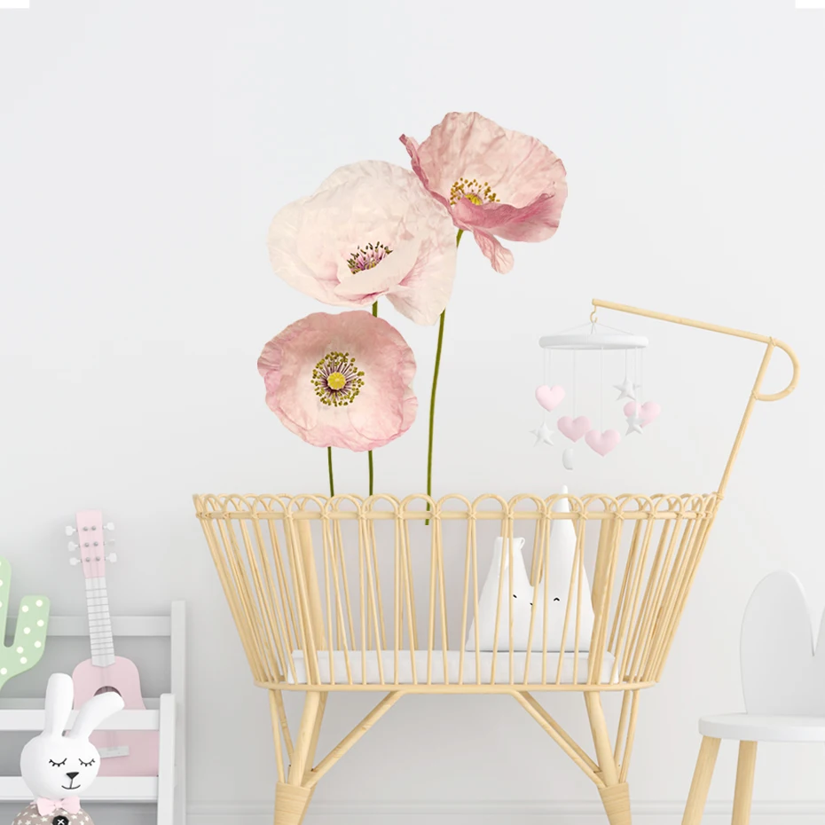 Розовый Мак анемон Цветы Наклейка на стену акварель Девушки детская комната, съемный наклейки на стену для детской комнаты современный интерьер домашний декор