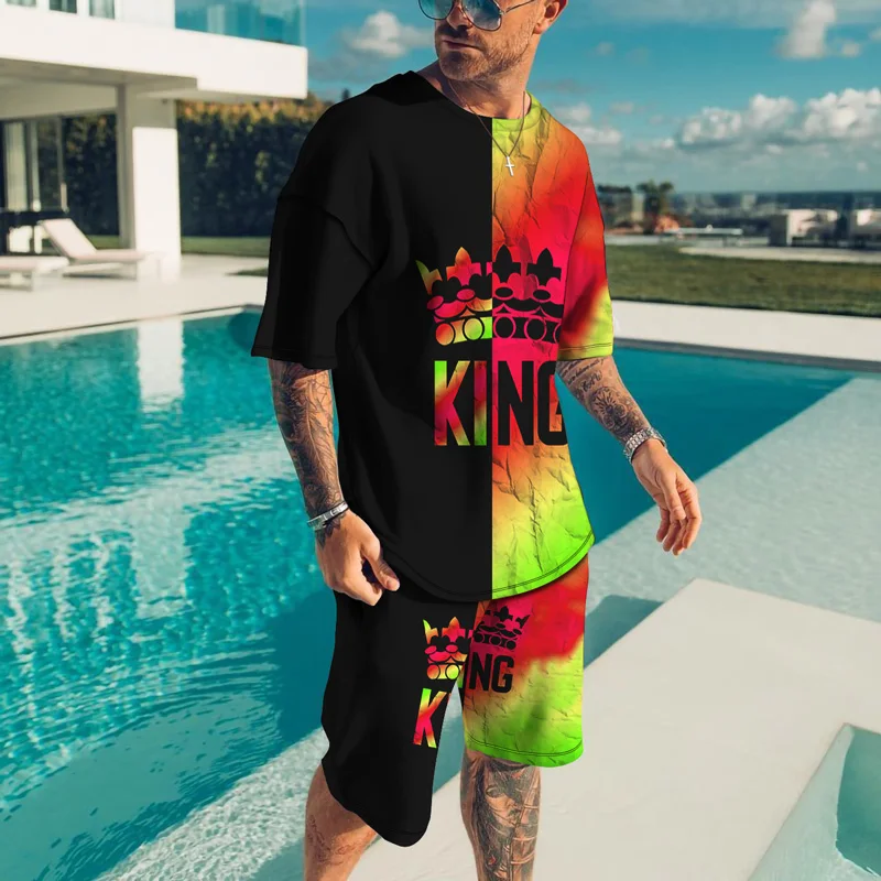 Костюм мужской из двух предметов, модная брендовая спортивная одежда оверсайз, дышащая тренировочная футболка с надписью, для бега