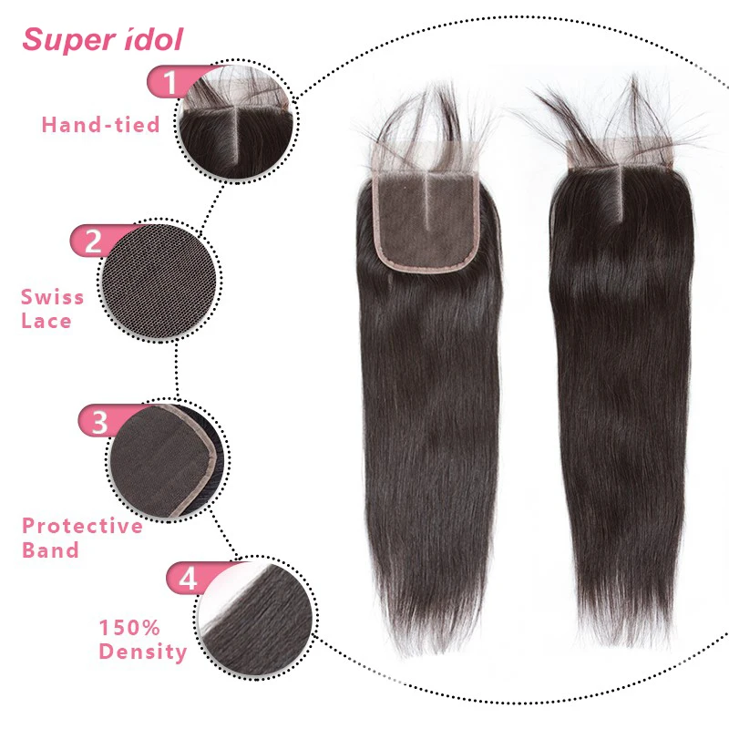 Прямые волосы с застежкой в бразильском стиле, пряди с застежкой 4x4, человеческие волосы без повреждений, Распродажа для женщин
