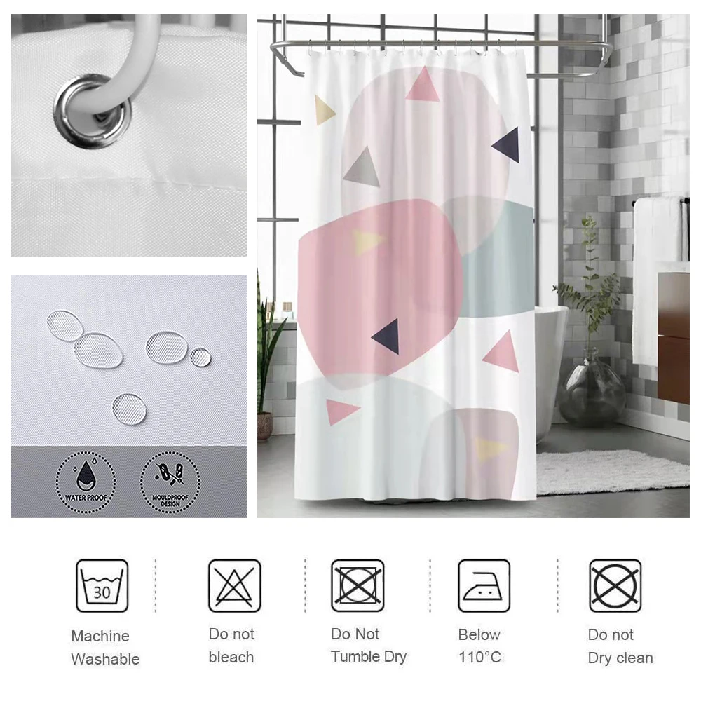 Рисунок: большой круг с принтомМатериал штор: полиэстерХарактеристики: водонепроницаемый, мягкий и прочныйИспользование: украшение для дома и отеляПосылка включает в себя:1 занавеска для душа + 12 пластиковых крючков Очень мягкая ткань высокой плотности, удобная, Экологичная, хорошая вентиляция.