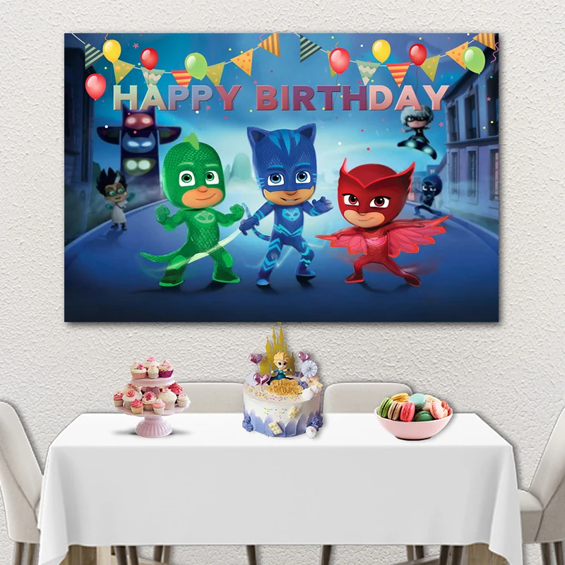 Пользовательские счастливый маленький герой маска игра мультфильм фонов мальчик день рождения пижама вечеринка торт стол украсить плакат фотография фон