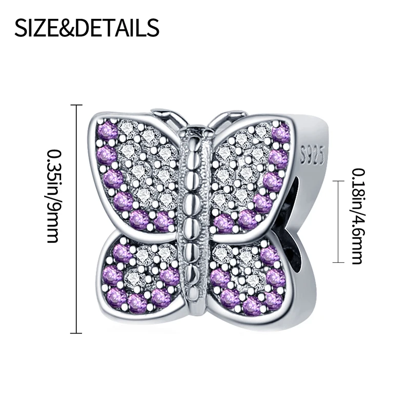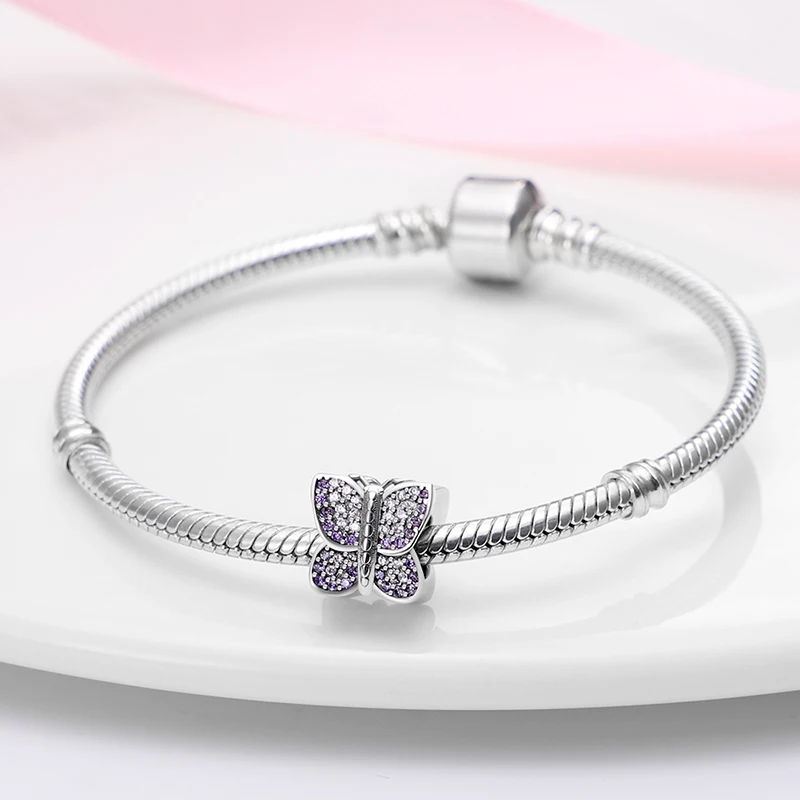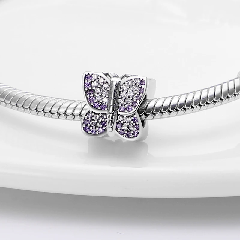 Подвеска для браслета Pandora женская, ювелирное изделие серебряного цвета с двусторонними бусинами в форме бабочки, изящная бижутерия сделай сам, на цепочке, 2021