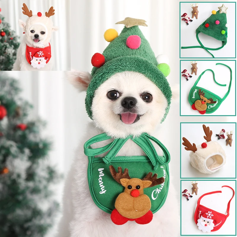 1 Комплект Новогодний для домашних собак шапка треугольный шарф Зимний комбинезон Рождественский костюм для маленьких средних и больших собак кошек домашних животных
