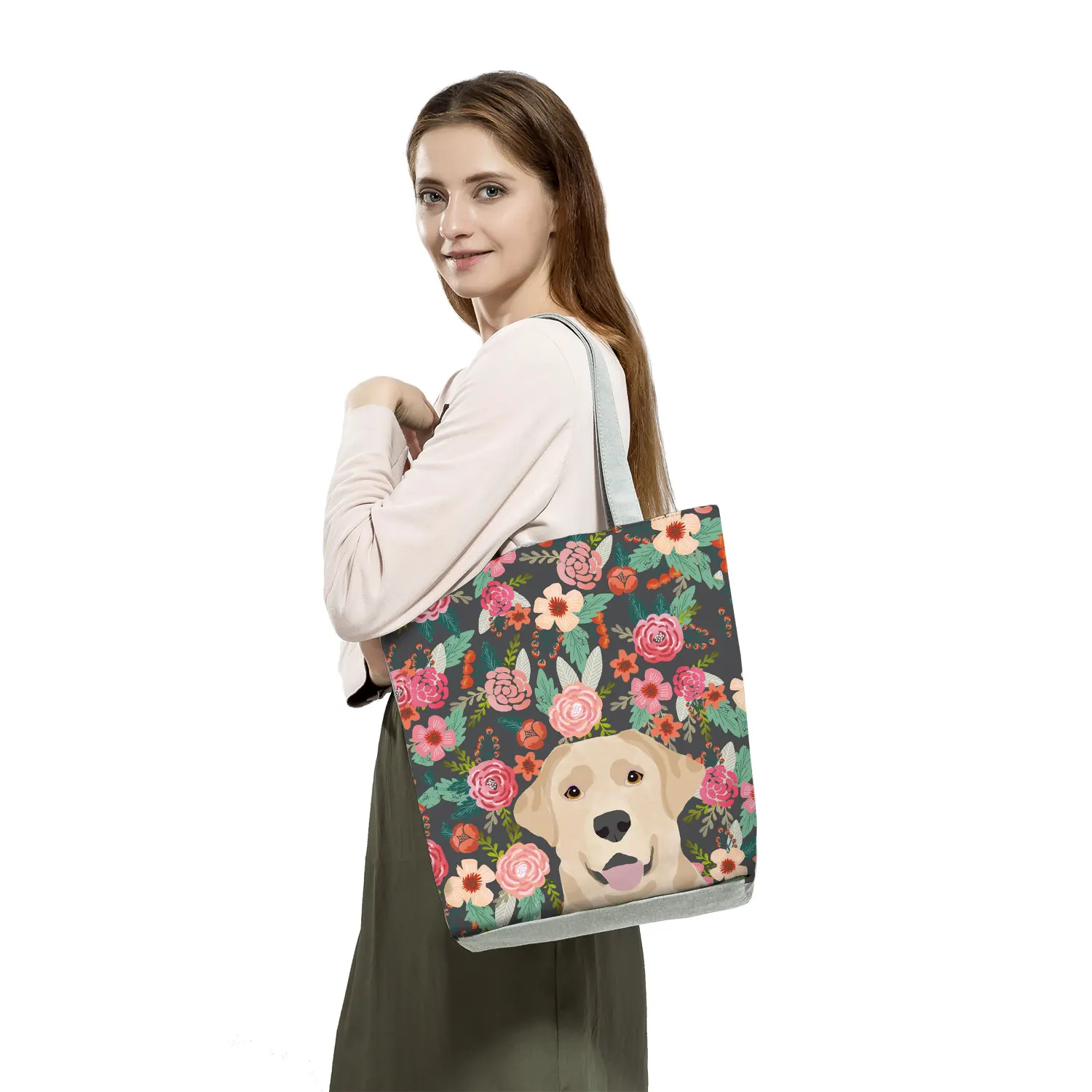 Женские сумки-тоут с цветочным принтом для домашних питомцев и кошек, повседневные школьные сумки для путешествий, многоразовые сумки для покупок в супермаркете