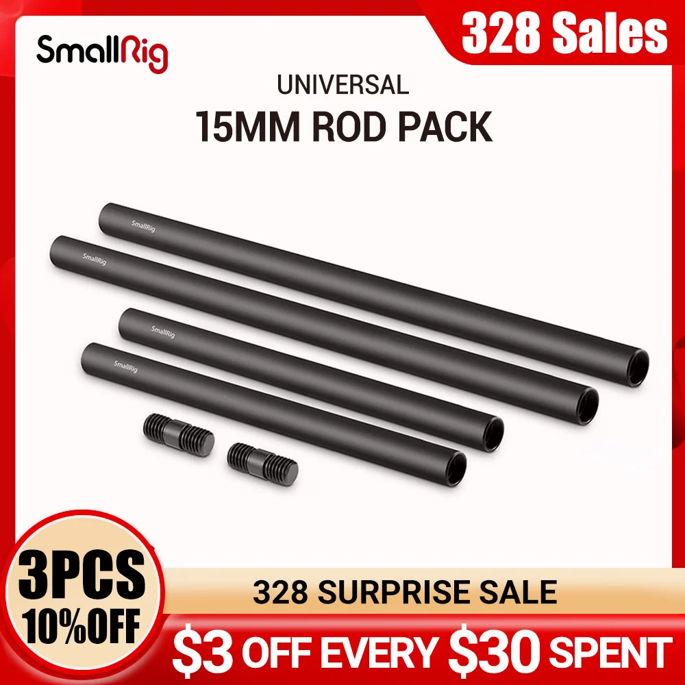 SmallRig 15 мм с резьбой M12, черные стержни из алюминиевого сплава для DSLR-камеры, универсальные аксессуары (6 шт.) 1659