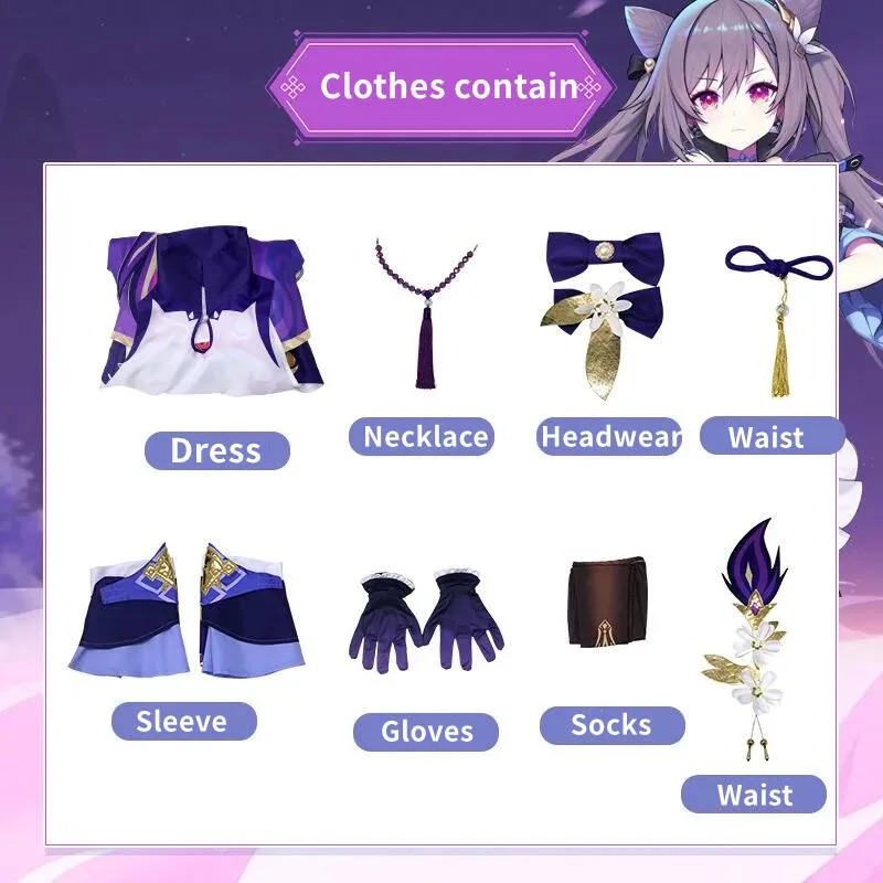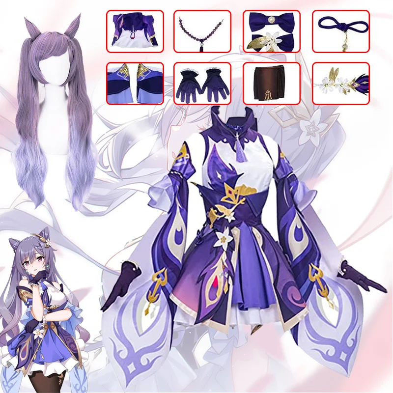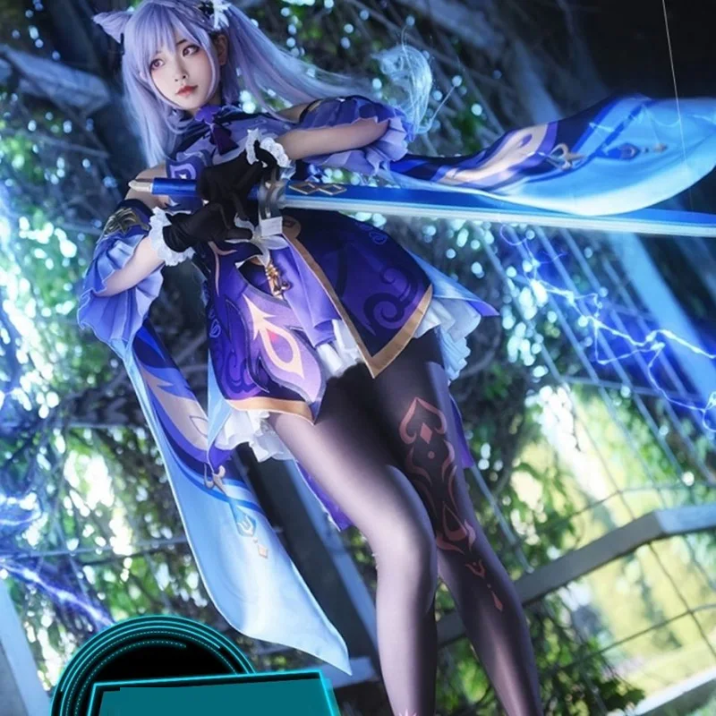 Genshin Impact Keqing, Фиолетовый Игровой костюм, женское платье, к...