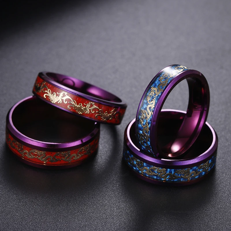 Мужское кольцо из нержавеющей стали с изображением дракона, инкрустированное красное кольцо из углеродного волокна, Женское Обручальное кольцо с Фениксом, ювелирное изделие для пары