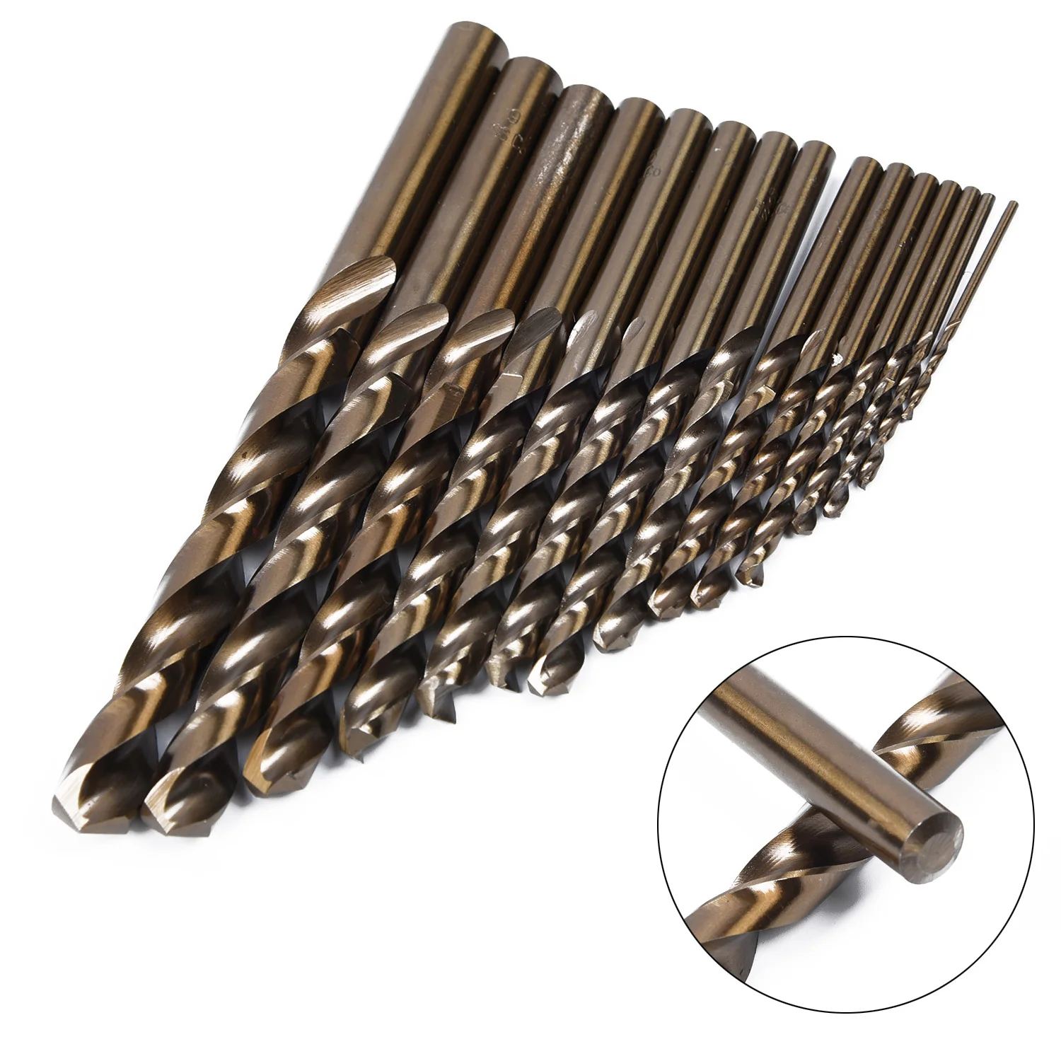 Кобальтовые сверла для металла, деревообработки, M35, быстрорежущая сталь, прямой хвостовик, 1,5-10 мм, скрученные сверла, электроинструменты, 15 шт.