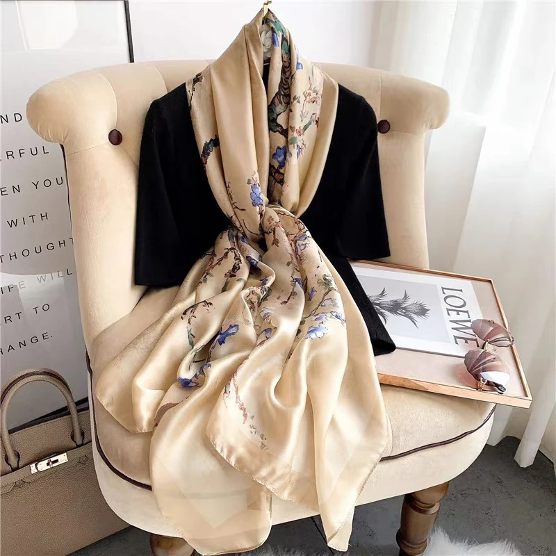 2021 женский Шелковый зимний шарф, роскошный дизайн, женская пляжная шаль с принтом, шарфы, модный гладкий платок, Женский хиджаб