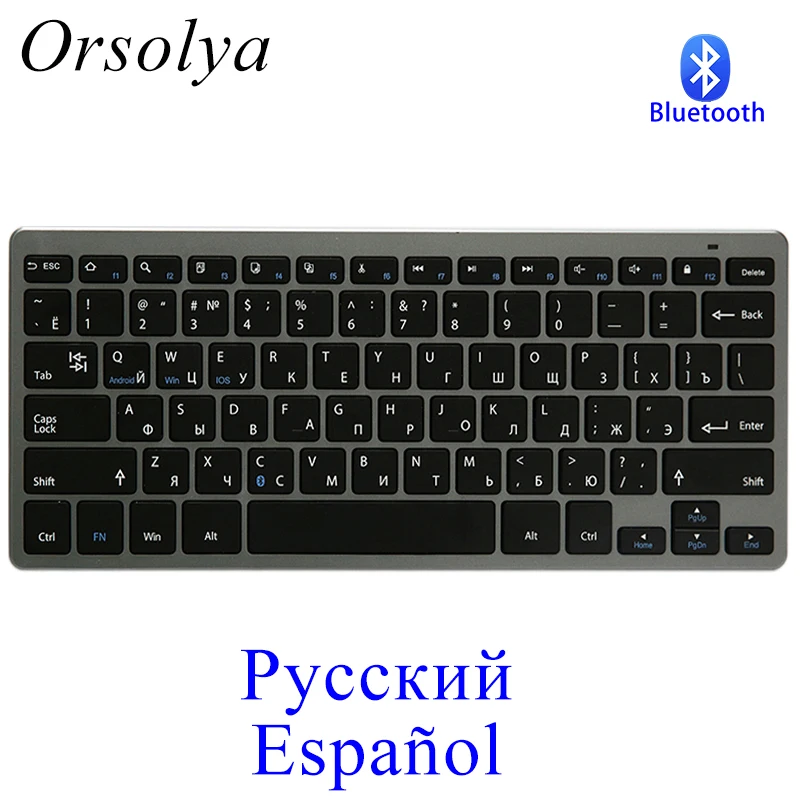 Портативная ультратонкая Беспроводная Bluetooth-клавиатура с русскойиспанской раскладкой для планшетовноутбуковIOSWindowsAndroid