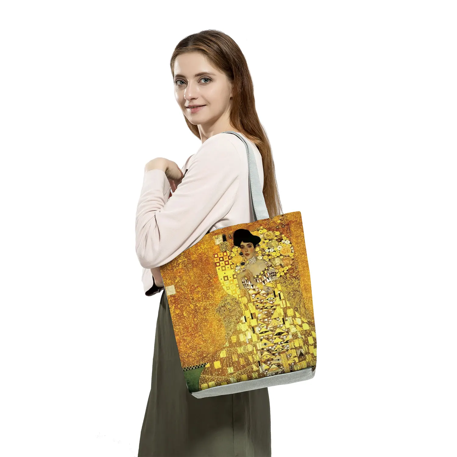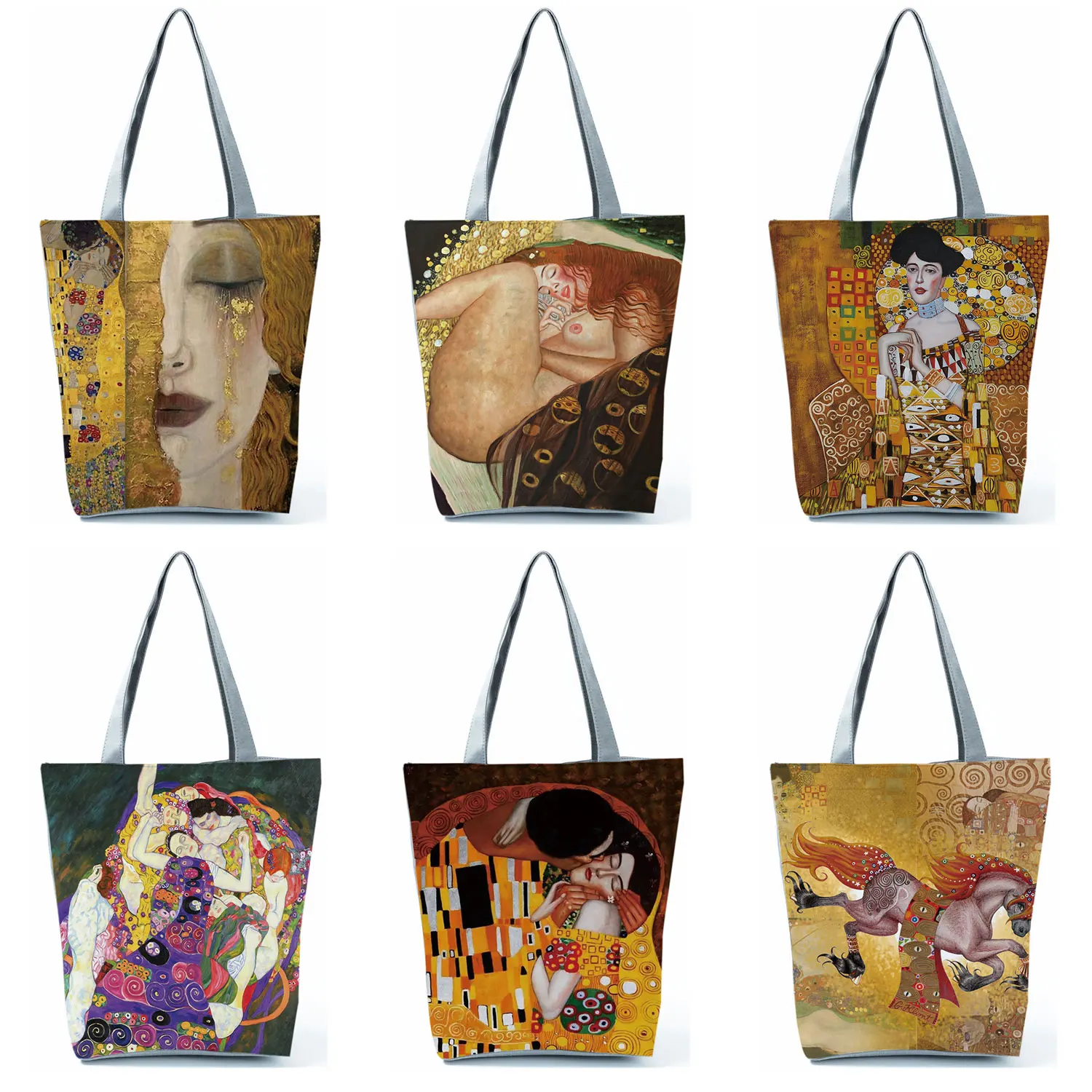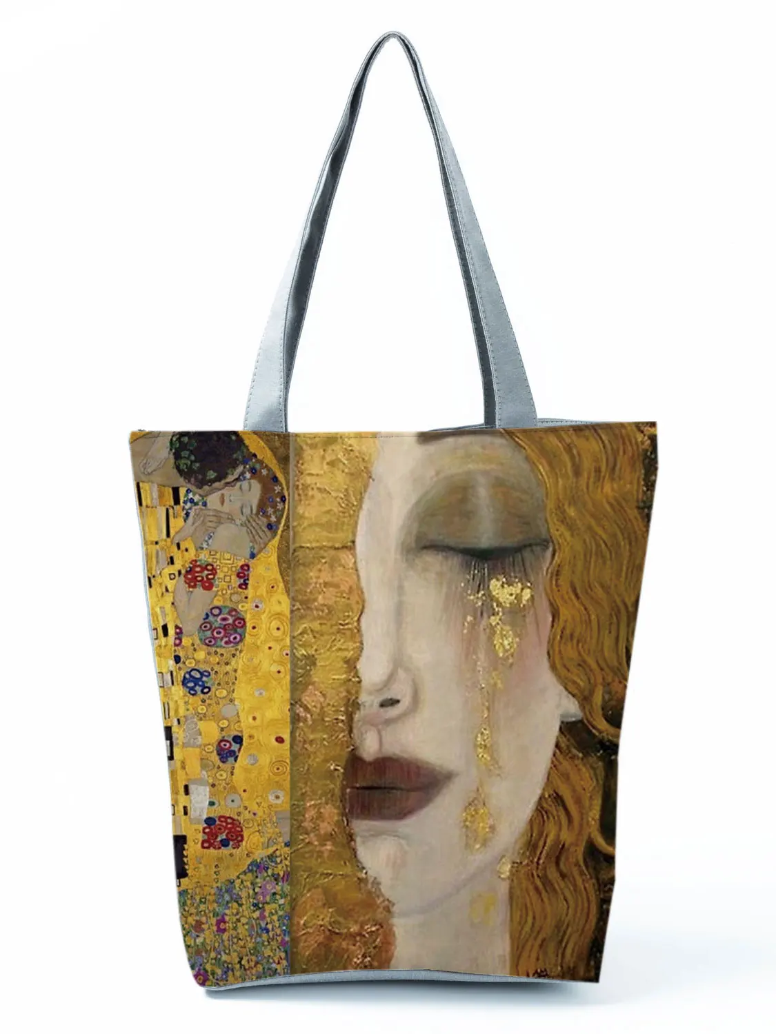 Индивидуальные картины маслом слезы ткань сумки-шопперы для женщин Gustav Климт дамская модная сумка большая емкость сумки для покупок
