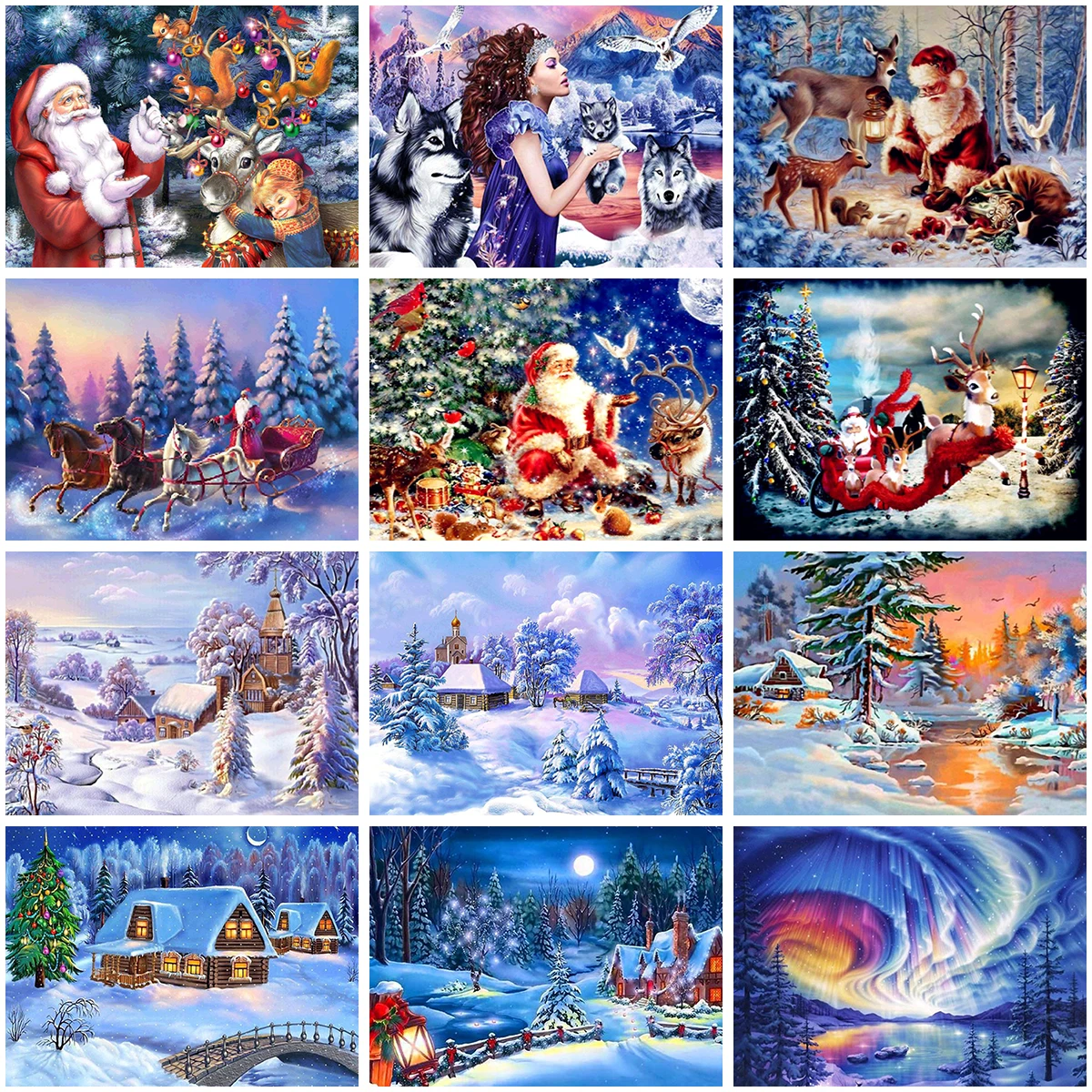 Алмазная 5D картина сделай сам, Рождественский пейзаж, полная вышив...