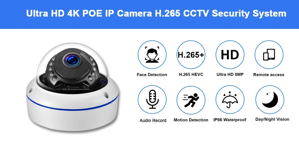 1, Ультра HD 4K дисплей высокой четкости, расширенное H.265 Сжатие видео;2. Ультра HD 4K POE ip-камера, металлический материал, IP66 водонепроницаемый, подходит для внутреннего и наружного использования, надежная Домашняя безопасность;3. Поддержка питания через Ethernet, подключи и работай, простота установки;4. Поддержка распознавания лица, записи лица, воспроизведения лица, обеспечивает ультра высокое разрешение видео наблюдения, обеспечивая максимальную детализацию и четкость доступны;5. Поддержка аудиозаписи, все камеры встроены в микрофон;6. Поддержка Ultra HD дневного ночного видения;7. Поддержка IR-CUT переключателя двойного фильтра, днем и ночью для достижения мониторинга, цвет не является частичным искажением цвета;8. Поддержка обнаружения движения, оповещения по электронной почте, воспроизведения видео и многоязычности;9. Поддержка Android,Iphone,Ipad,PC,VMS,P2P view;10. Удаленный доступ в любом месте, в любое время;