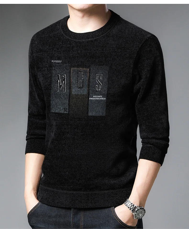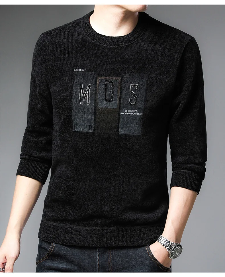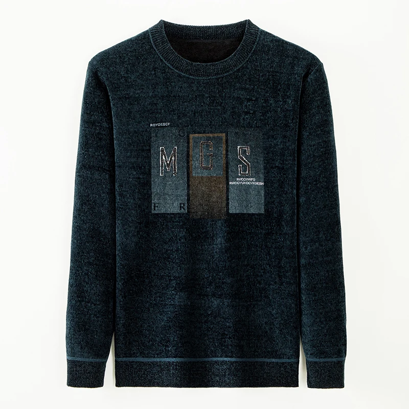 Свитер мужской зимний с флисовой подкладкой и круглым вырезом, Y382