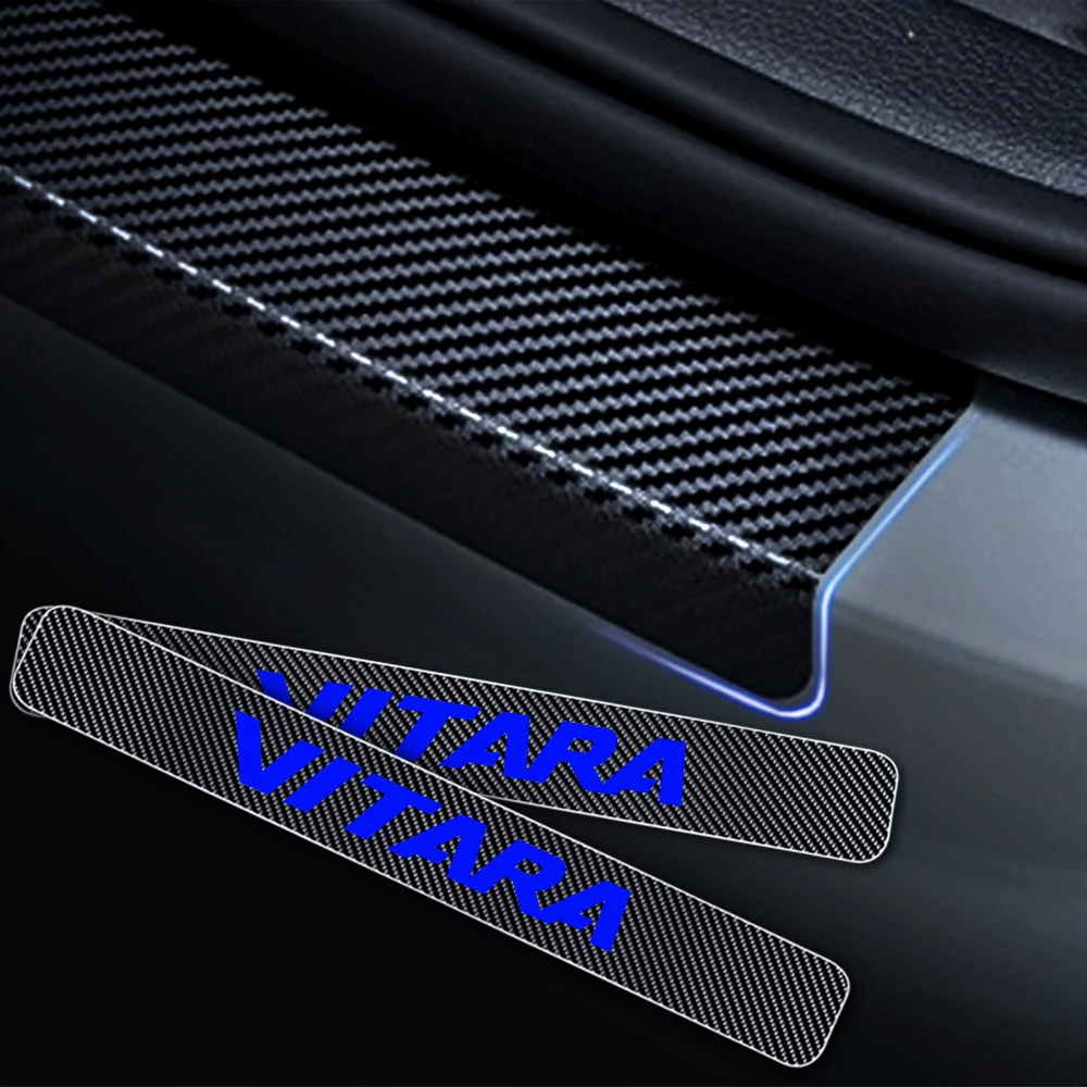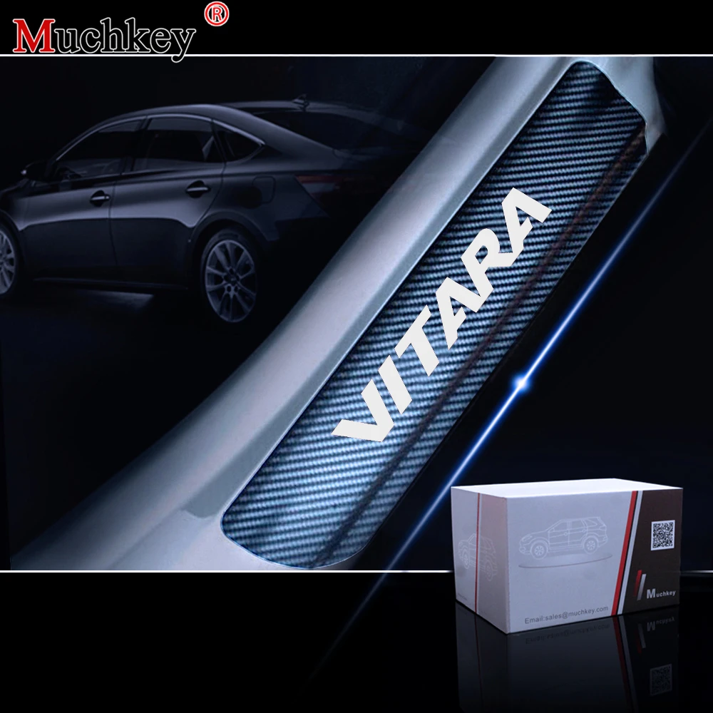 4 шт.Для Suzuki VitaraАвтомобильная дверь порога Добро пожаловать педаль стикер s углеродное волокно виниловая наклейка Накладка на порог двери Накладка автомобильные аксессуары