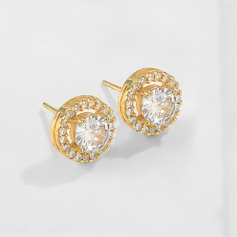 Роскошные маленькие круглые женские серьги-гвоздики с кристаллами, ...