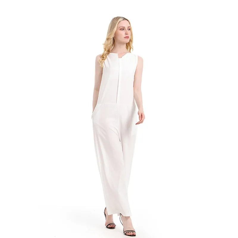Комбинезон Женский свободного покроя, элегантный повседневный длинный брючный костюм, белый черный, на лето