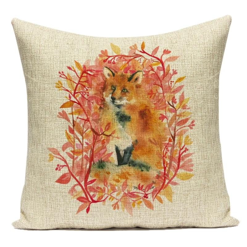 Акварельный цветок и искусство для домашнего декора, диванная подушка для автомобильного кресла, чехол, наволочки с принтом милых животных и Лис, наволочки