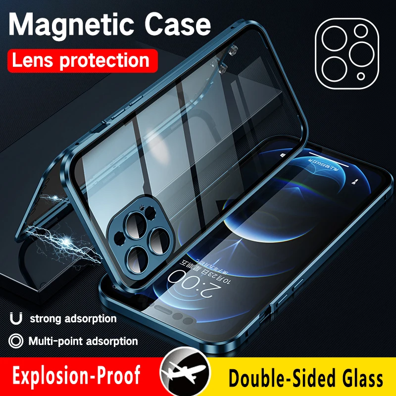 Магнитная Адсорбция металла для iPhone 13 12 11 Pro Max Защита объектива камеры двухсторонний стеклянный чехол для iPhone 13 12 Mini
