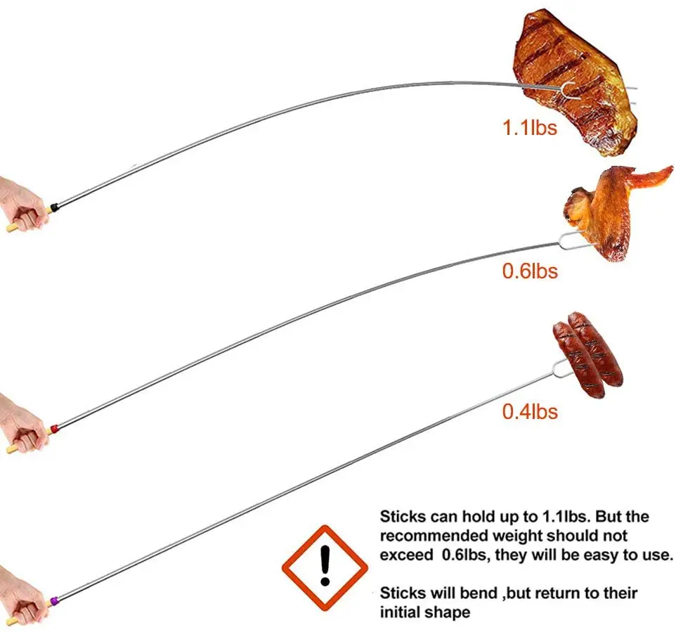 Телескопические палочки расширяются до 32 дюймов, поэтому никто не должен оставаться слишком близко к огню.