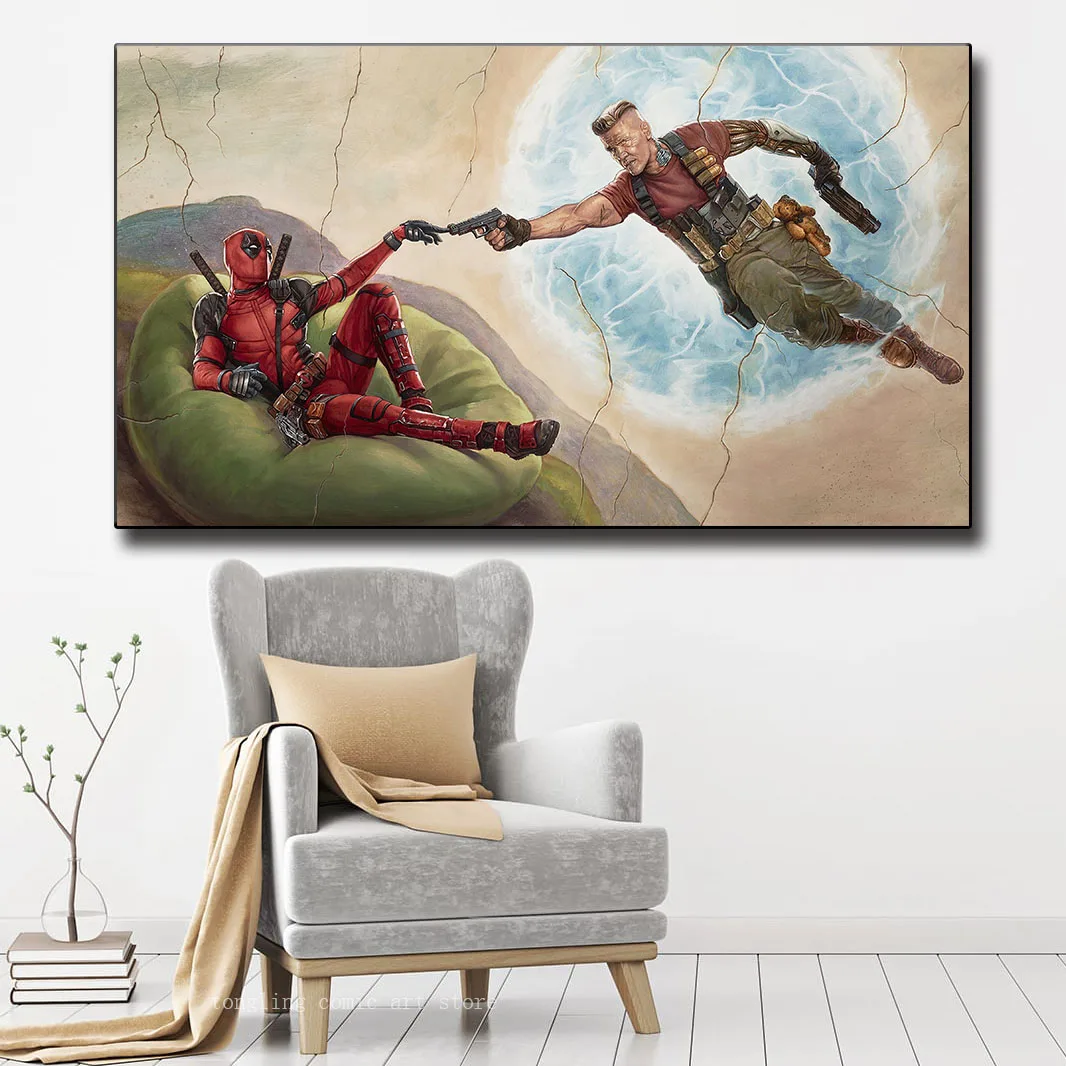Дэдпул супергероев Marvel Spoof классические известные картины для творчества, Картина на холсте Адама, картина для украшения гостиной и спальни
