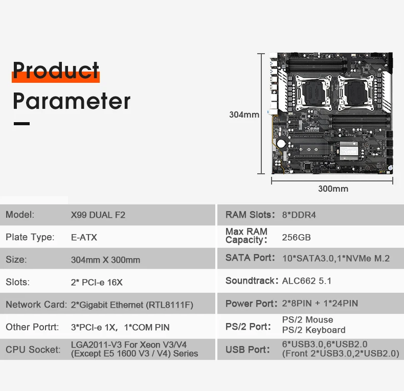 1 * x99 двойная материнская плата F2 + 2 * E5 2678V 3 CPU + 8 * DDR4 16GB = 128GB 2400MHz