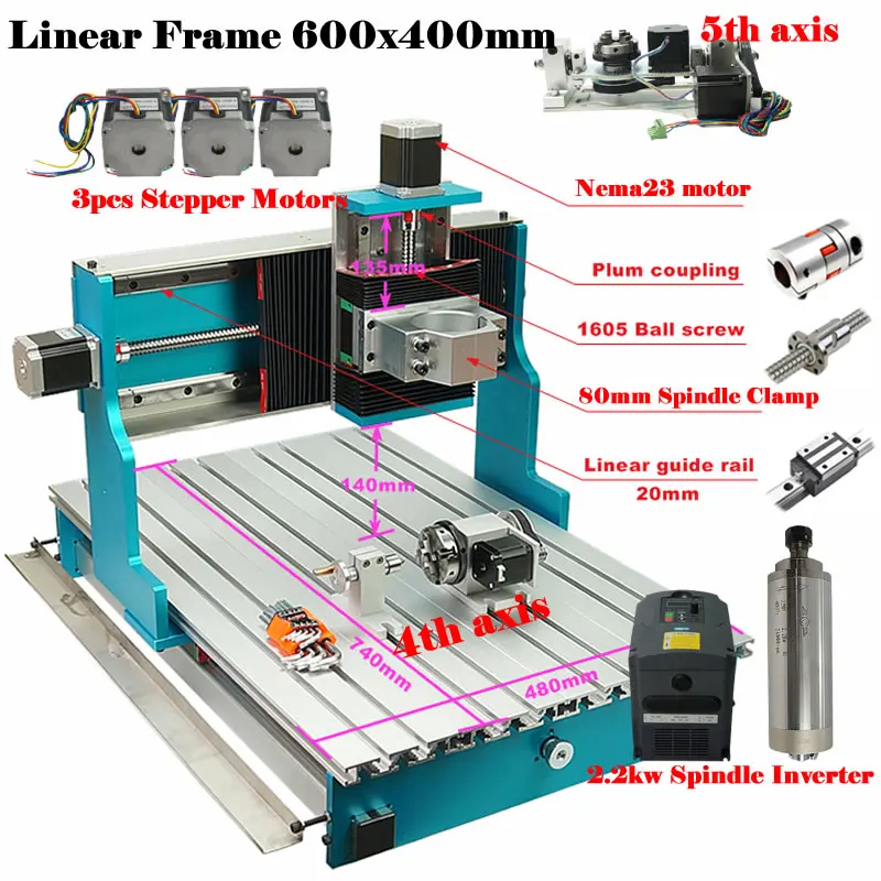 Мини линейный направляющий ЧПУ каркас 6040 обновление с ЧПУ 3040 5-осевой 2.2квт шпиндель VFD инвертор с шаговыми двигателями для ЧПУ маршрутизатора