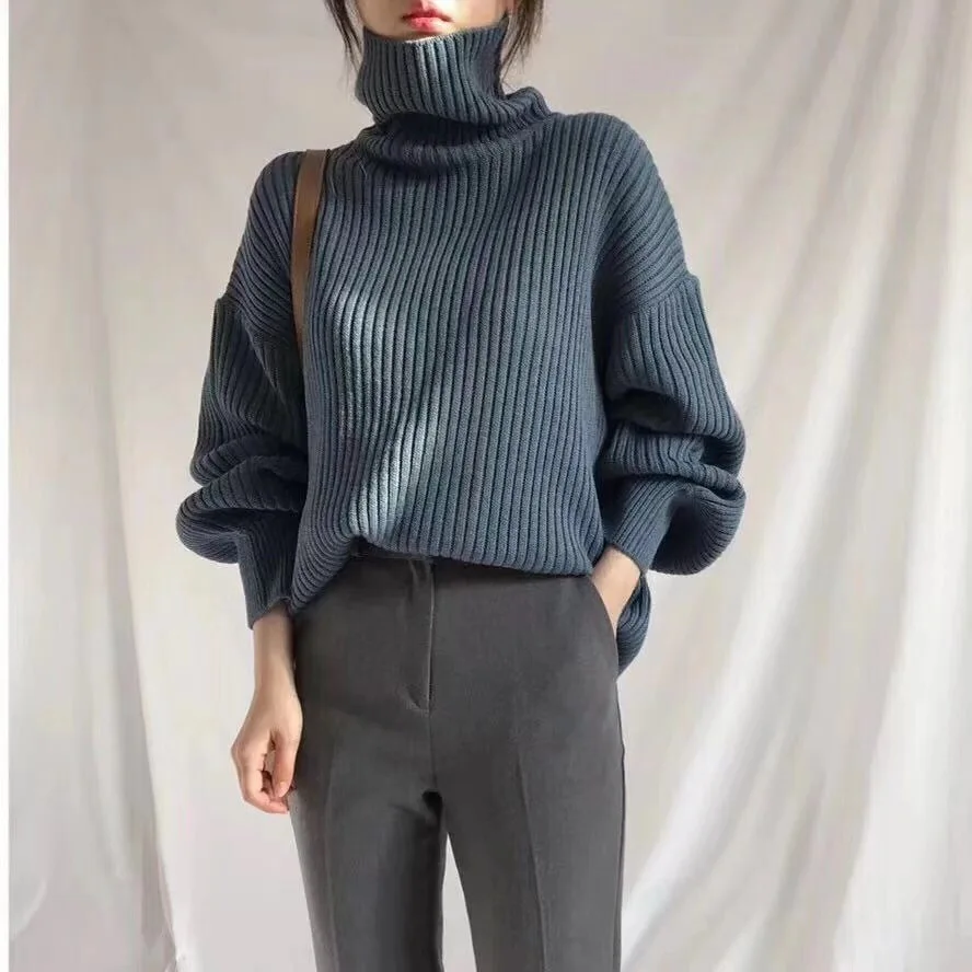 Новинка 2021, зимняя Женская водолазка, Свободный Повседневный Свитер оверсайз, женские вязаные пуловеры с длинным рукавом, топы, винтажные высококачественные