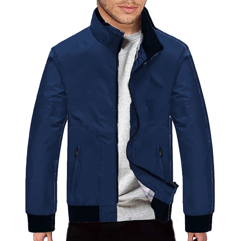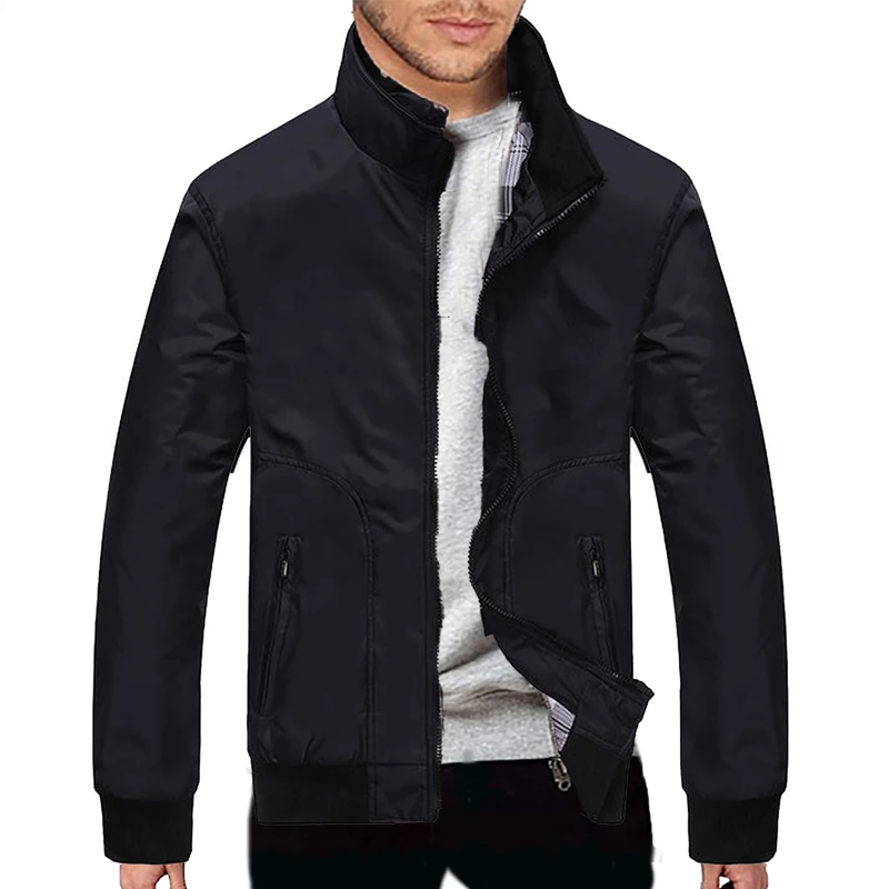 Мужская осенне-зимняя повседневная однотонная кашемировая утепленная куртка на молнии