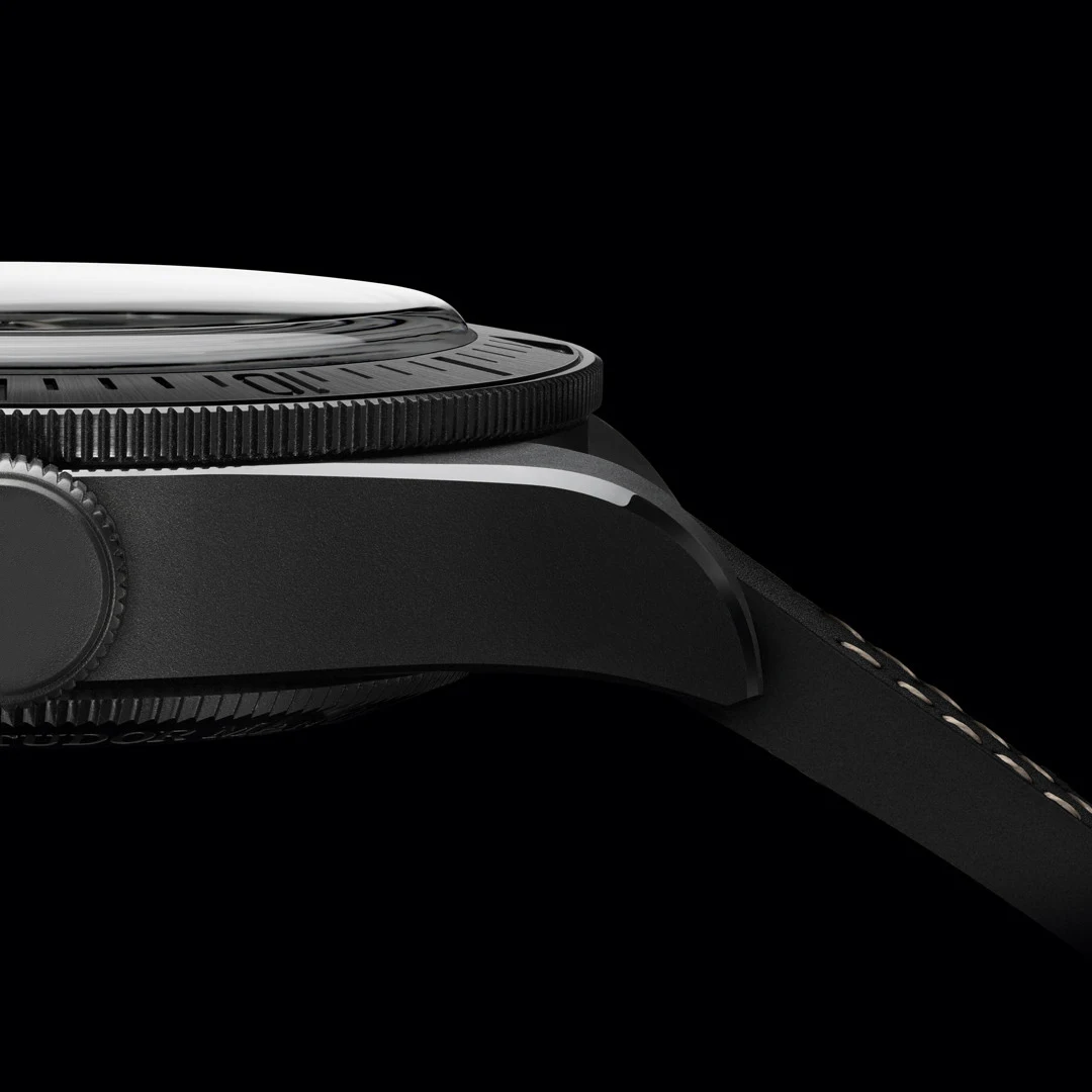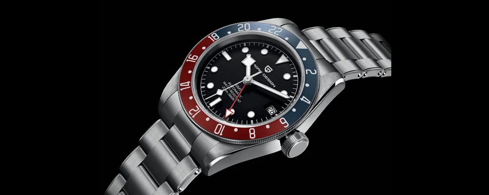 Самой отличительной особенностью новой модели является Безель из нержавеющей стали, который привлекает внимание круговой матовой поверхностью. Треугольник в 12 часов украшен красным цветом, что обеспечивает спортивный вид.