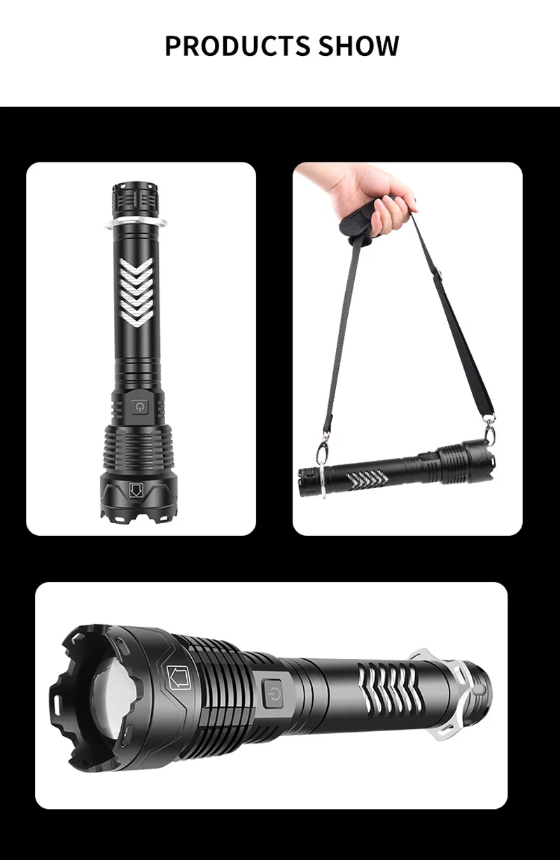 ▼Product Особенности1: Мини размер, сильный светильник, диапазон до 500 метров2: Используйте фитиль XHP50.2 для достижения выходной яркости 8000 люменов (макс.)3: уникальный дизайн цепи, максимальное использование батарей4: в нижней части имеется мощный магнит, который можно прикрепить к любой железной поверхности.