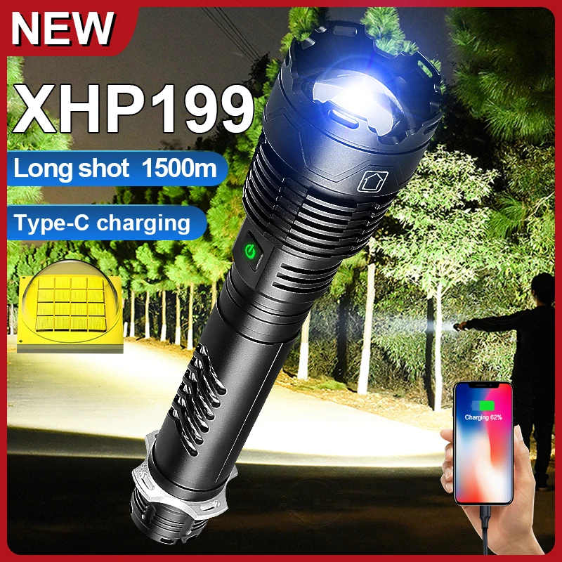 Супер мощная светодиодная вспышка XHP199 6800 мАч, перезаряжаемая через USB тактическая вспышка 26650 XHP160, яркий ручной фонарь