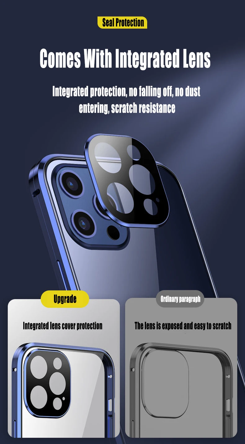 360 двухстороннее стекло магнитное поглощение металлический чехол для телефона iPhone 13 12 Mini 11 Pro Max Защитная пленка для объектива камеры