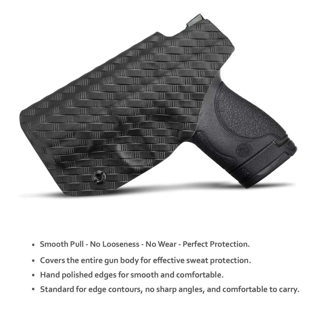 US .08 ”углеродное волокно KYDEX ручной работы: легкий, прочный, прочный, влагозащищенный и моющийся, обеспечивает комфорт и уверенность в любой ситуации. Кобура M & P Shield 9 мм закрывает весь корпус, эффективно предотвращая пот и избегая зажимов, можно безопасно и безопасно использовать одежду.