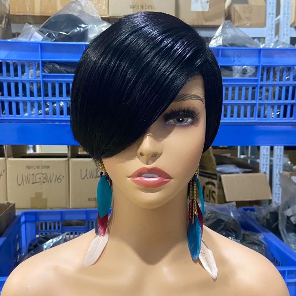 Парик из натуральных волос с челкой, с короткой стрижкой Пикси, пря...