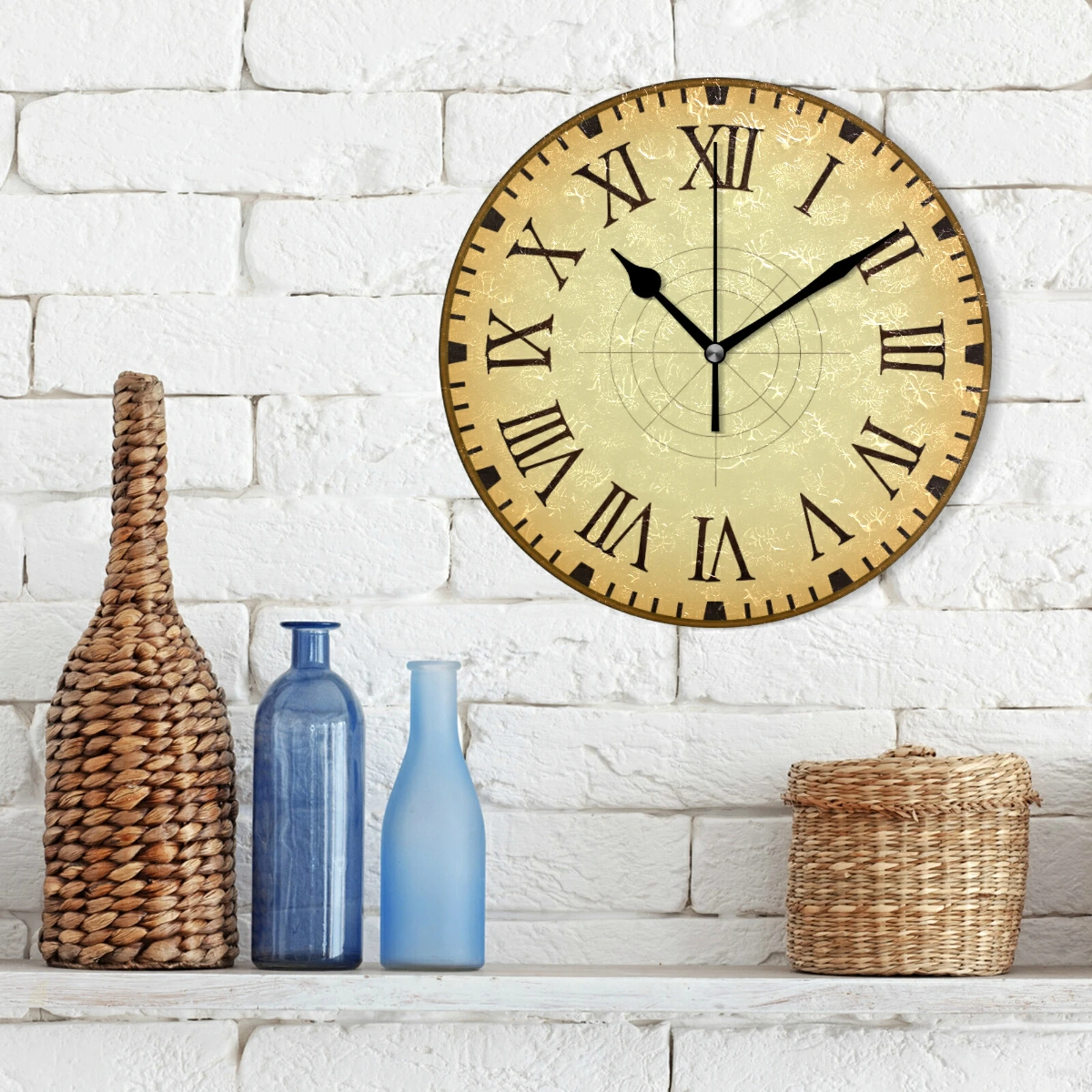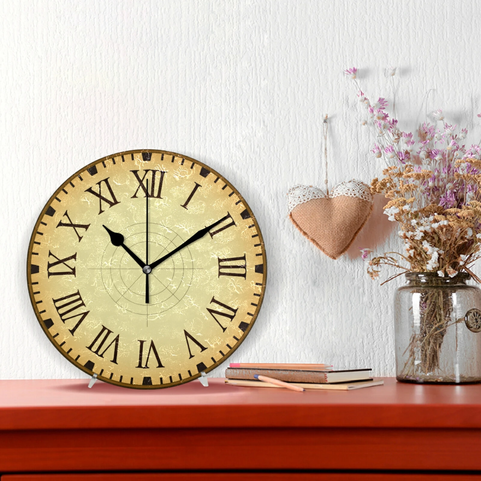 Винтажные потертые настенные часы с цветочным принтом, тихие круглы...