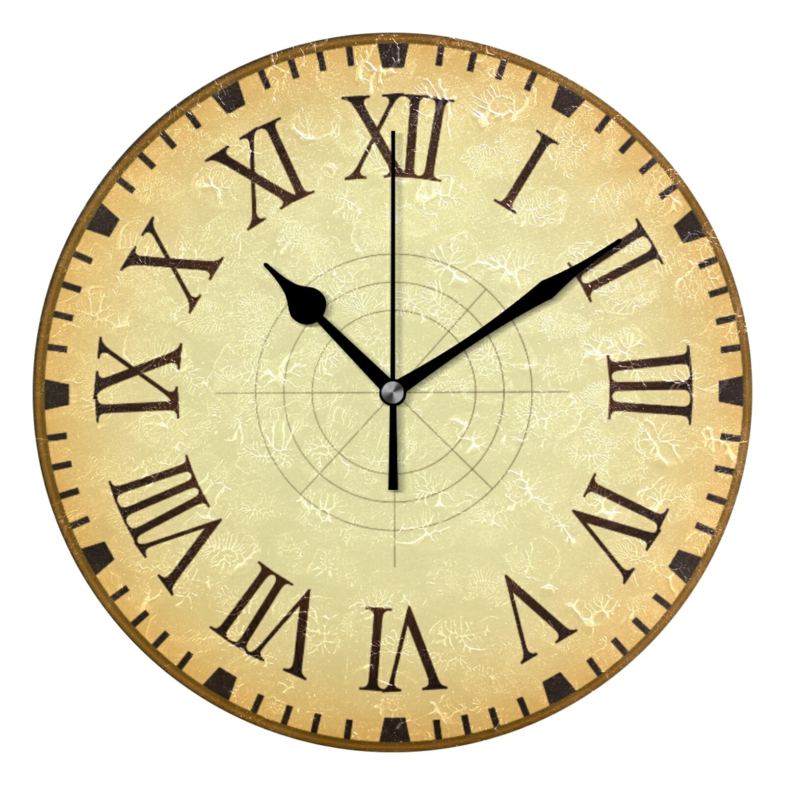 Круглые Настенные часы с винтажным принтом роз, бесшумные на батаре...