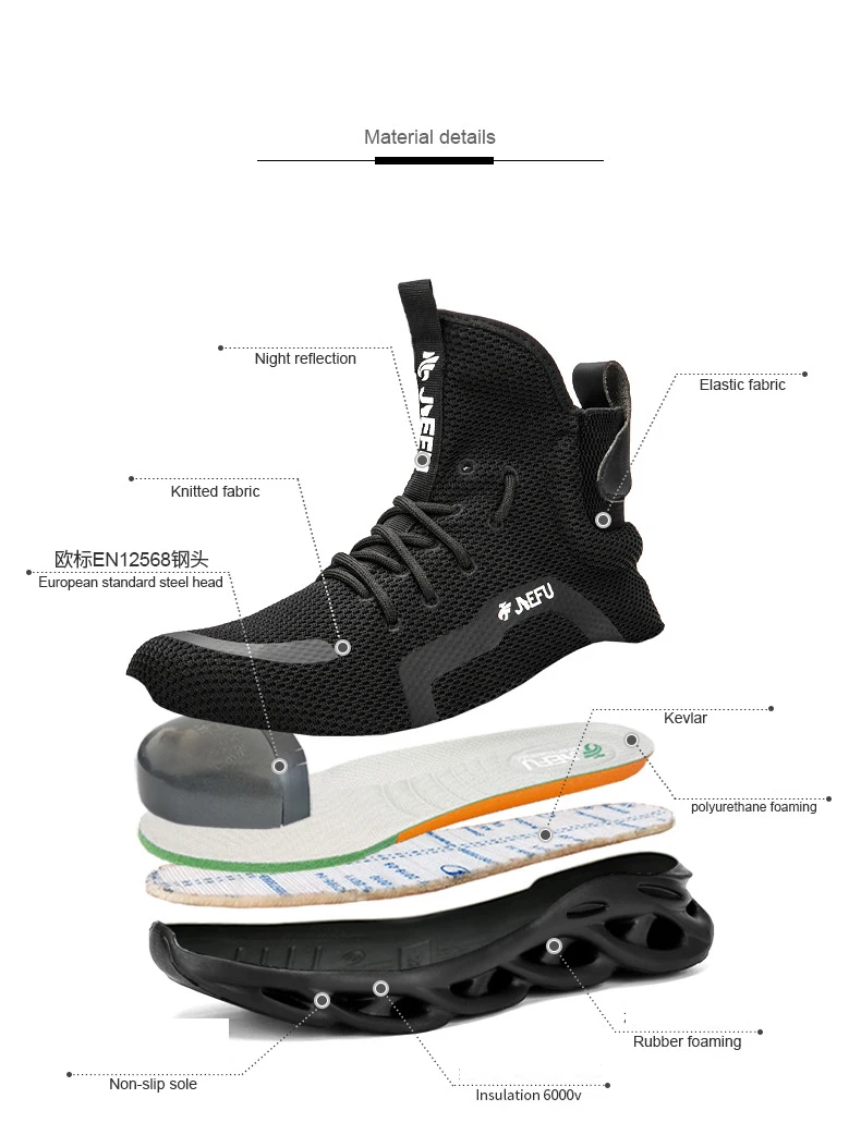 Рабочие ботинки JIEFU со стальным носком для мужчин, легкие, дышащи...