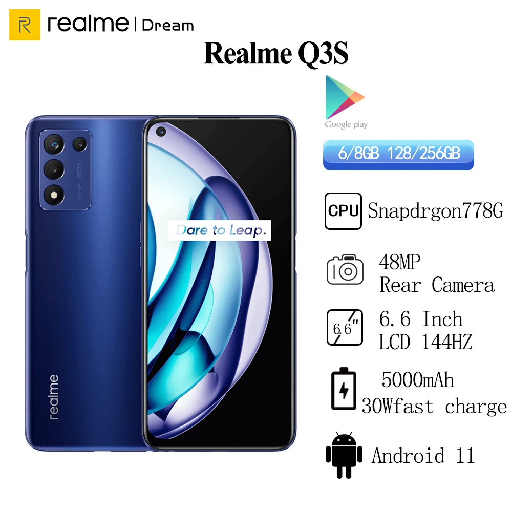 Оригинальный смартфон Realme Q3S, телефон с планшетом 778G, ЖК-дисплей 6,6 Гц, быстрая зарядка 30 Вт, основная камера 48 МП, 144 мАч, OTA, Android 11