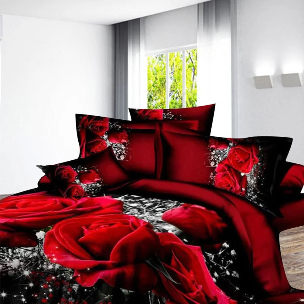 4 шт.компл. комплекты постельного белья с объемными красными розами, Свадебный мягкий пододеяльник, простыня, наволочки, постельный комплект, Королевский постельное белье