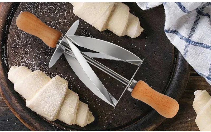Вращающийся резак из нержавеющей стали для изготовления Круассанов, хлеба, теста, Кондитерские резаки, деревянная ручка, кухонные приспособления для выпечки, нож