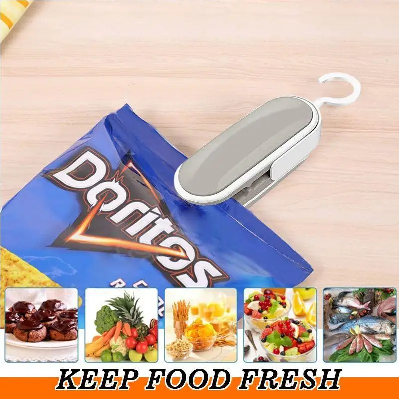 Купите его, портативный ручной упаковщик еды, который поможет вам быстро разрезать мешок, а затем поможет вам запечатать его.
