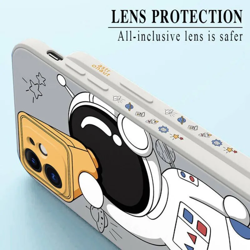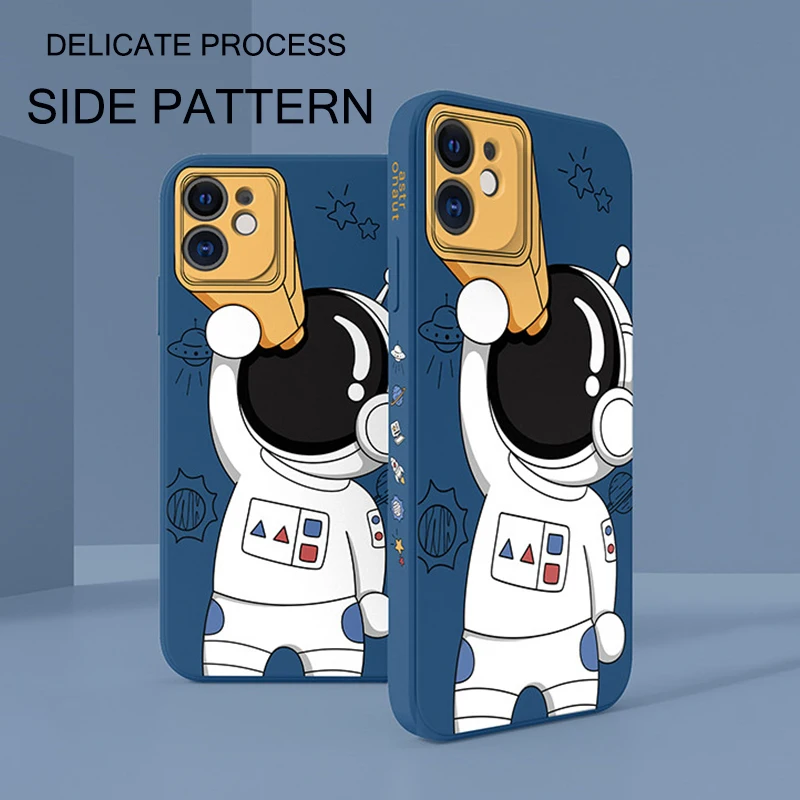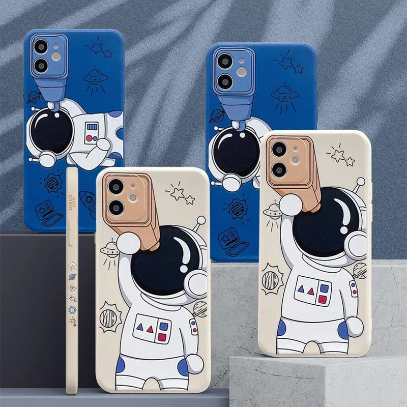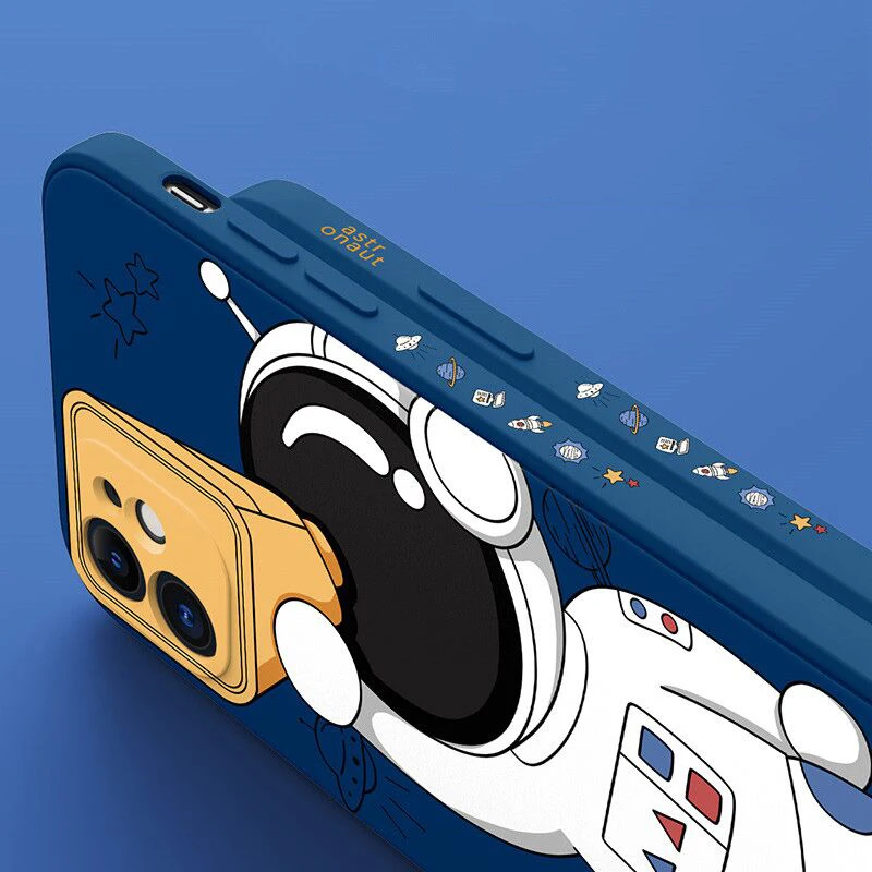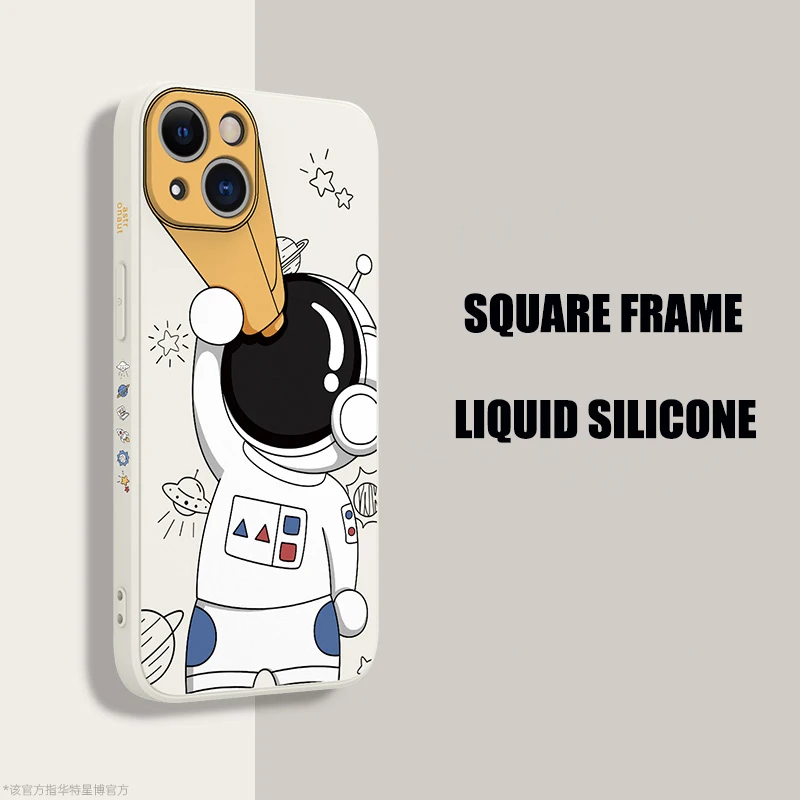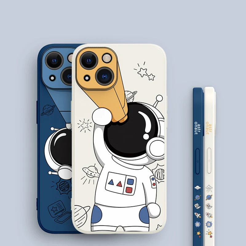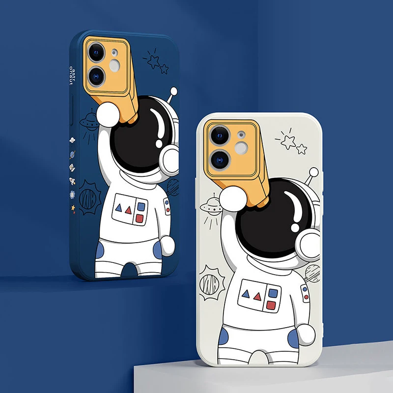 Милый мультяшный квадратный чехол для телефона с астронавтом для iPhone 13 12 11 Pro Max XS Max XR X 8 7 Plus, мягкий бампер из жидкого силикона, задняя крышка